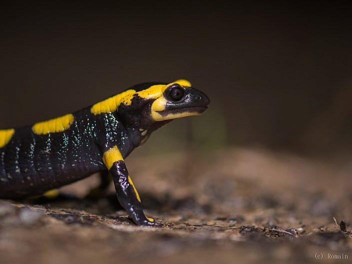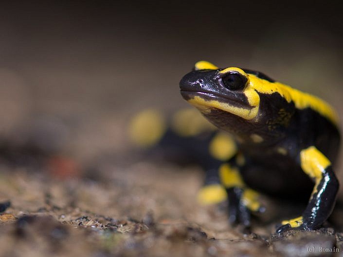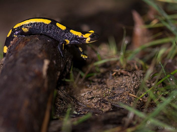 Salamandre tachetée (Salamandra salamandra), Forêt de Bouconne (31).
