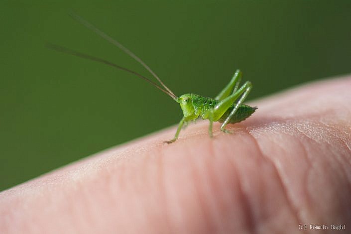 2017-03-18 Les premières larves de sauterelle verte (tettigonia viridissima) font leur apparition au jardin.